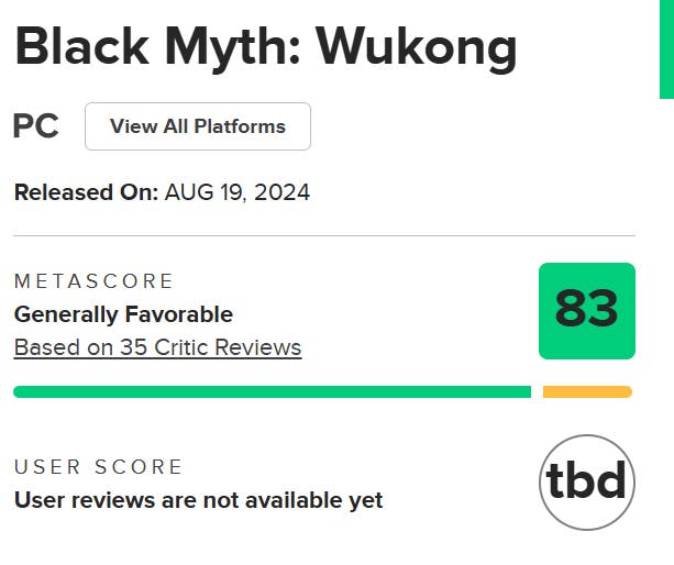 O aguardado jogo Black Myth: Wukong, desenvolvido pela Game Science, tem recebido grande atenção, com as primeiras análises a destacarem a qualidade do título. De acordo com o Metacritic, o jogo está com uma pontuação média de 83%, um desempenho sólido que mostra a aceitação positiva dos críticos especializados.