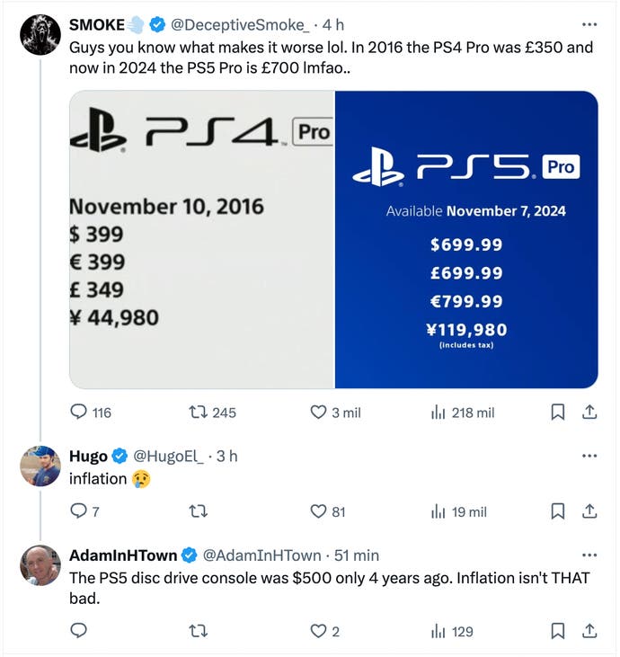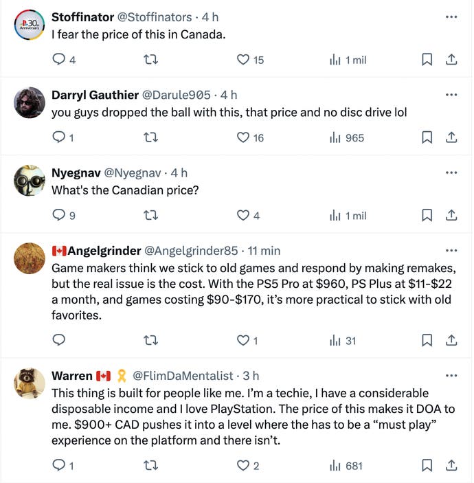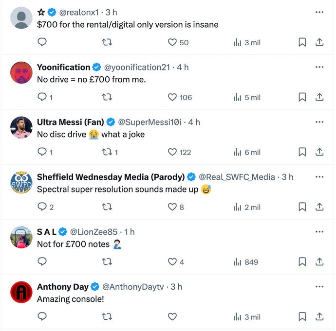 Seja nos Estados Unidos, Europa, Canadá ou Japão, os canais oficiais da PlayStation nas redes sociais estão a ficar entupidos de mensagens de fãs que estão incrédulos com os preços apresentados. Além de criticar o preço, que consideram elevado até para o mais hardcore dos jogadores, consideram que é mau gosto pedir tanto dinheiro por uma consola sem leitor de discos físicos.