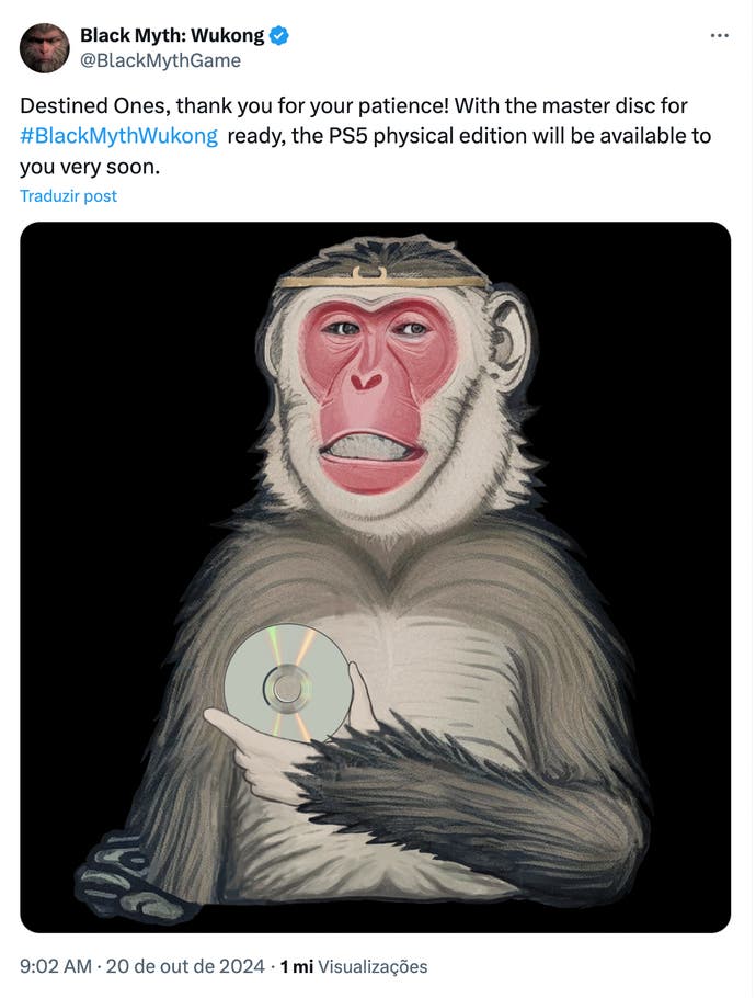 No entanto, o já conhecido Billbil-kun diz que a versão física de Black Myth: Wukong para a PS5 chegará ainda em outubro. Nos Estados Unidos, chegará ainda hoje e na Europa será apresentada a partir desta semana, muito possivelmente a 26 de outubro.