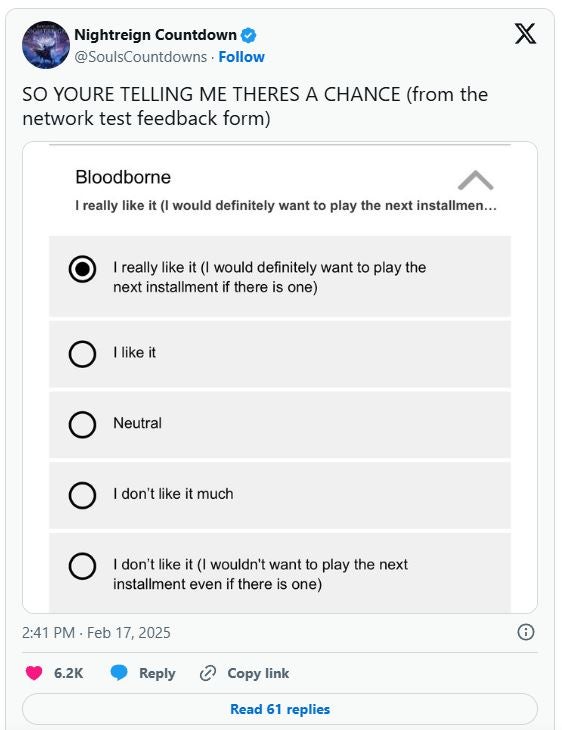 Recentemente, graças a um questionário dado àqueles que participaram no teste de Elden Ring: Nightreign, os fãs de Bloodborne puderam expressar o seu interesse por uma sequencia do jogo.