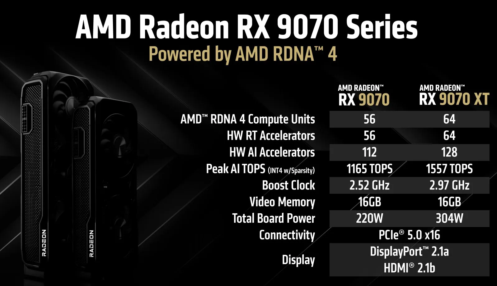 RDNA 4, 16 GB GDDR6 e FSR 4.