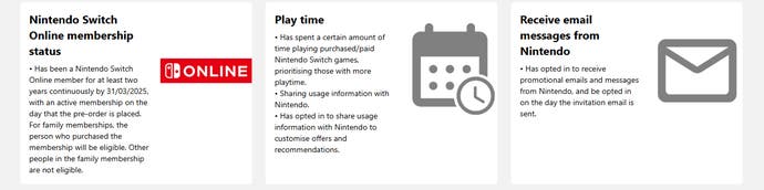Os critérios acima referidos podem ser reduzidos ao longo do tempo para que mais pessoas possam pré-reservar na My Nintendo Store. No entanto, a Nintendo continuará a concentrar-se em privilegiar os jogadores mais dedicados da Nintendo Switch e isso dependerá do stock.