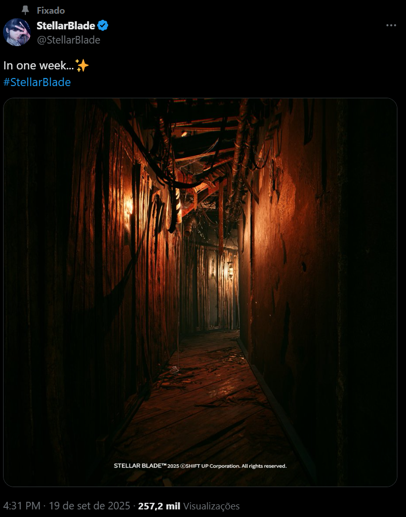 A Shift Up publicou uma imagem de Stellar Blade no X acompanhada da mensagem “Daqui a uma semana...”. É um teaser simples, mas misterioso, que já está a criar teorias sobre o que está para vir.